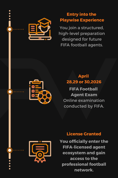 This program details how the Playwise experience is structured, what you will learn, and how each step prepares you for the FIFA Football Agent Exam and your professional positioning as a football agent.